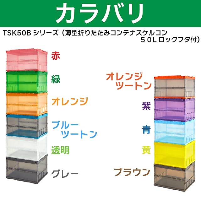 商品名:トラスコ中山(TRUSCO) 薄型折りたたみコンテナスケル 透明パープル 収納ケース 収納ボックス ロックフタ付 透明パープル 50L TSK-C50B-VI