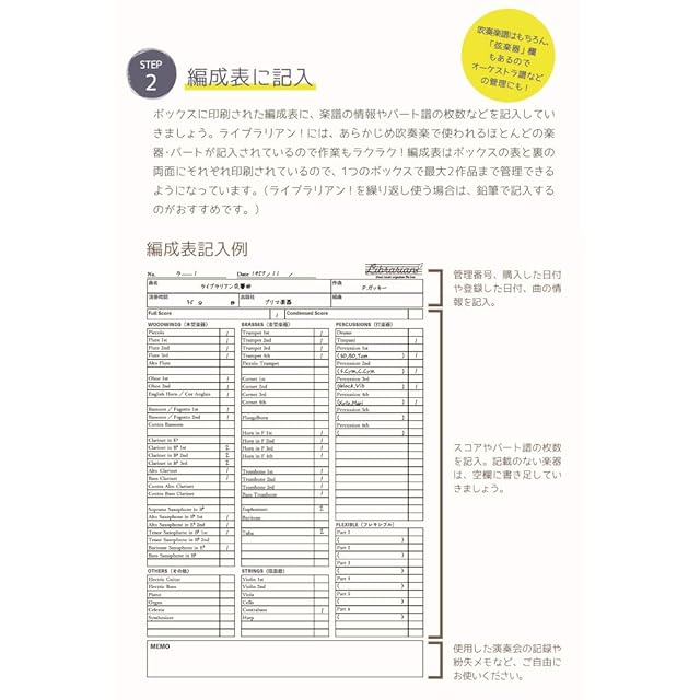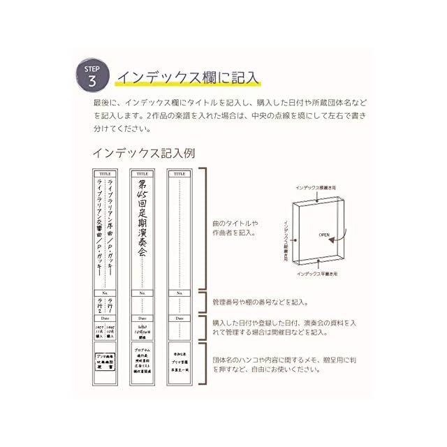 かさばる吹奏楽譜を見やすく管理。編成表チックリストつき(箱の両面に印刷されているので2冊分管理可能)*本商品は5箱を1セットとしております。