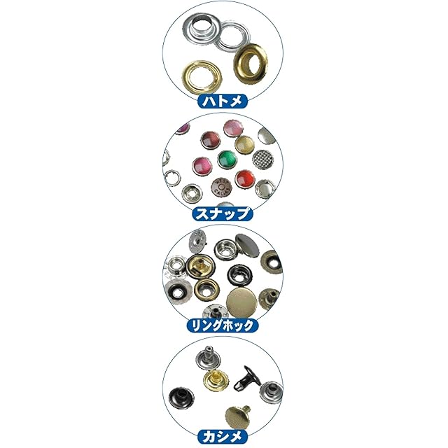 用途:コマを換え、ハトメ・スナップ・カシメ・リングホックに使用。