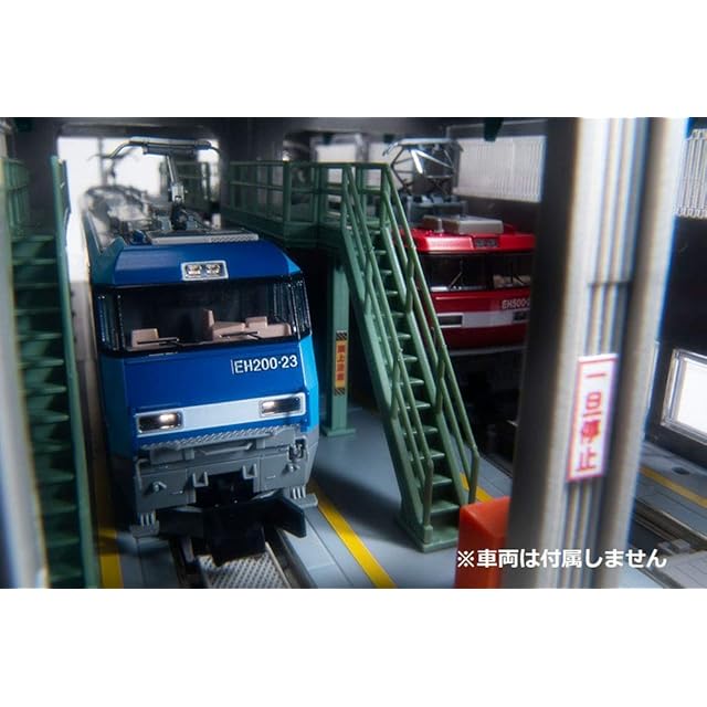 複線機関庫内に組立式のパンタ台が設置可能。レイアウトの一部は車両基地レールセットと同様に複線間隔が狭くなっていて、組み立て式のパンタ台給油設備を配置。