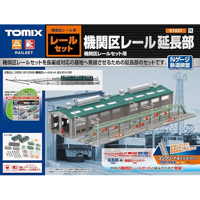 機関区レールセット延長用のセット。機関区レールセットを延長して検修庫を再現可能。複線機関庫は機関区レールセット同梱のものと同色を採用。