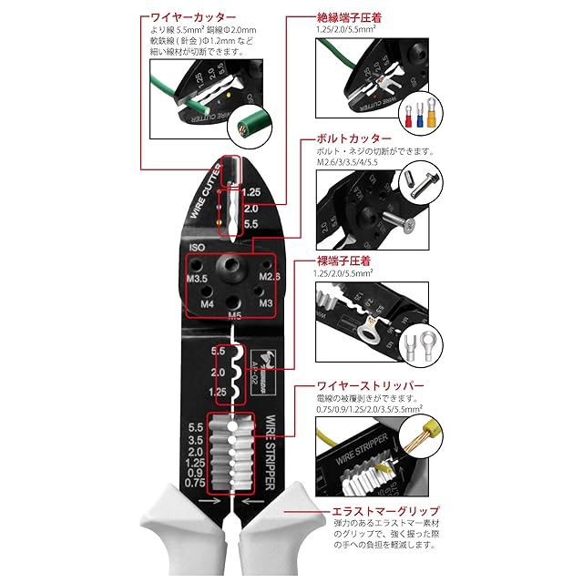 ワイヤーストリッパー対応サイズ:0.75・0.9・1.25・2.0・3.5・5.5mm2