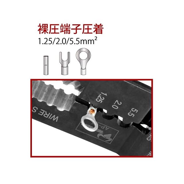 裸圧着端子対応サイズ:1.25・2.0・5.5mm2
