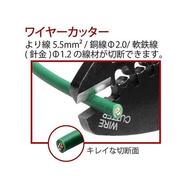 ワイヤーカッター切断能力:より線/5.5mm2、銅線/直径2.0mm、軟鉄線(針金)/直径1.2mm