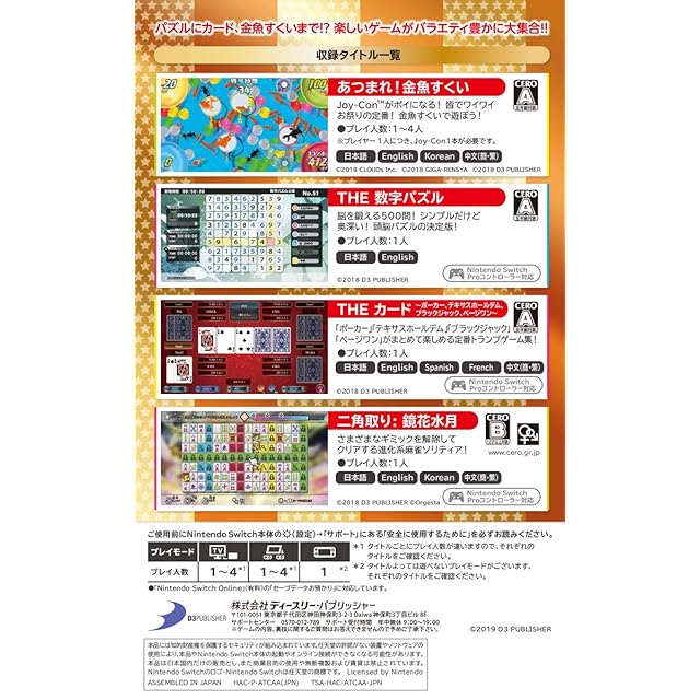 商品名:THE バラエティゲーム大集合~金魚すくい・カード・数字パズル・二角取り~ -Switch
