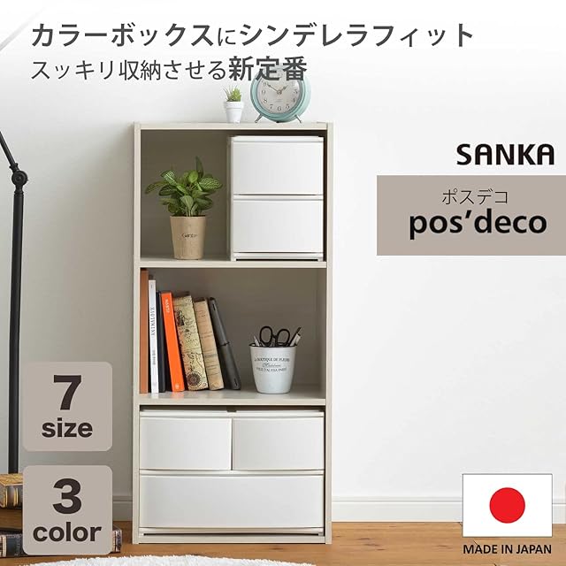 商品名:サンカ ポスデコ カラーボックスにピッタリフィット 引き出し収納ボックス ワイド 浅3段(引出し6個) ホワイト ずれを防ぐラバーストッパー 重ねて使える スタッキングチェスト ロック機構 日本製 カラーボックス 収納ケース 小物 衣装 ボックス (幅39x奥行26.5x高さ26.5cm) NpdW-EWH
