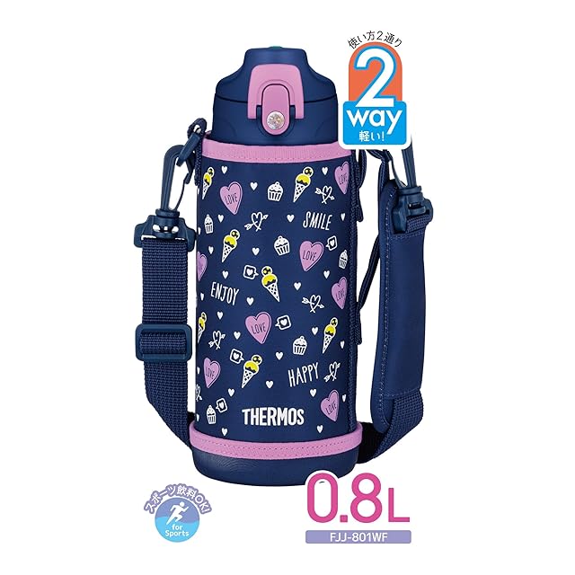 サーモス 水筒 真空断熱2ウェイボトル 0.8L/0.83L ネイビーパープル 直飲み コップ付き 子供用 通園通学 FJJ-801WF NVPL