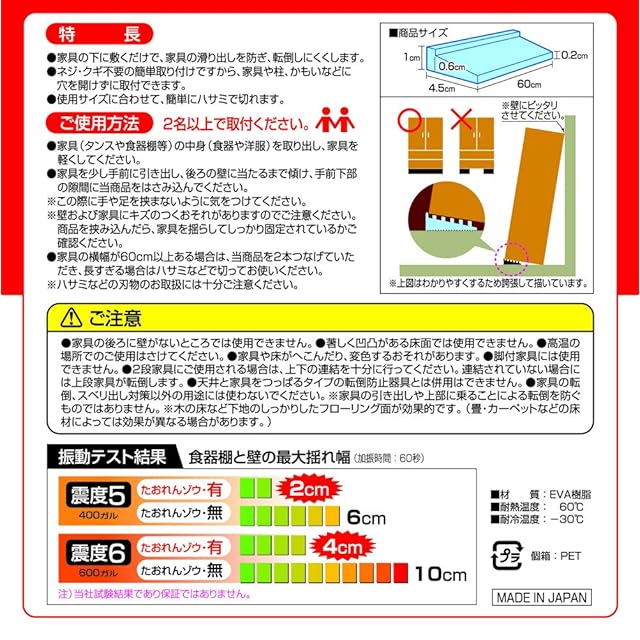 ミツギロン 家具転倒防止安定板 たおれんゾウ60cm*1本