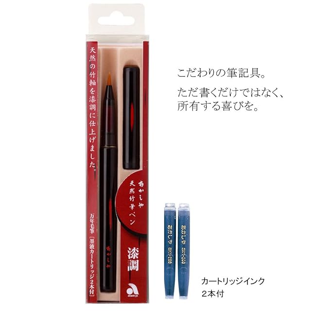 あかしや 筆ペン 天然竹筆ペン 漆調 透明ケース入 黒軸 AK2000UP-BK