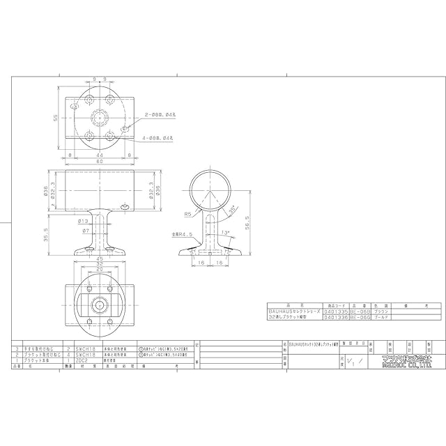 商品名:マツ六 手すり部材 BAUHAUS セレクト 32通しブラケット縦型 BE-06B ブラウン
