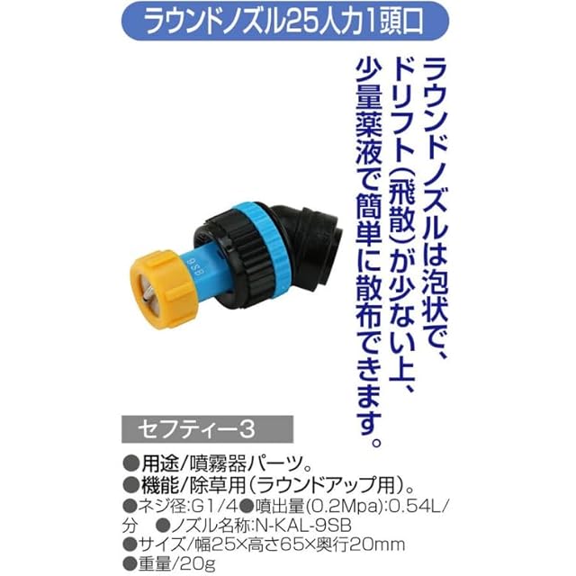 セフティー3(Safety-3) 人力用噴霧器 ラウンドノズル25 人力1頭口 除草用 ラウンドアップ用