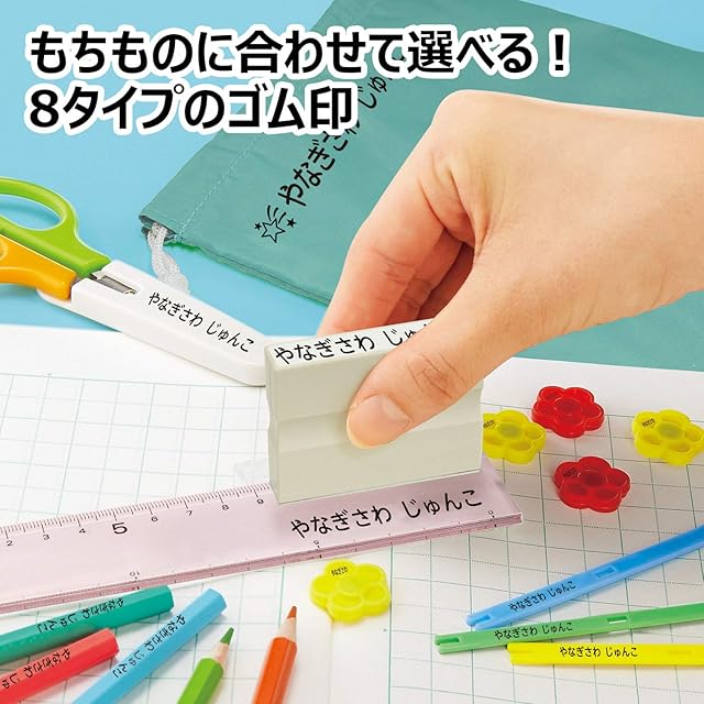 【セット内容】ゴム印:全8タイプ×各1本、専用ケース 1個、スタンプ台 1個、スタンプガイド 1個、補充インク(黒) 1本、専用クリーナー 1本