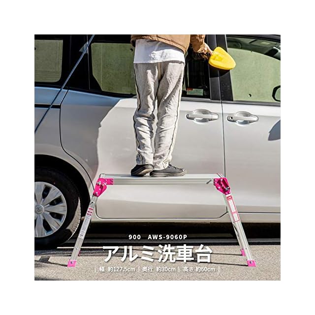 アルミ洗車台 足場 洗車 踏み台 高さ60cm 幅90cm 軽量 折りたたみ アルミ製 耐荷重100kg コンパクト収納 ステップ 便利