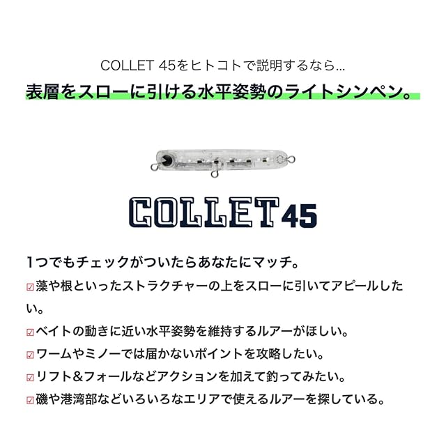 商品名:アムズデザイン(ima) ルアー COLLET 45 コレット シラスグローベリー. #CL45-006