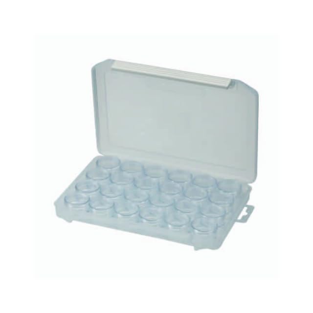 24個のラウンドケース(丸型ケース)を格納した平型小物入れ。