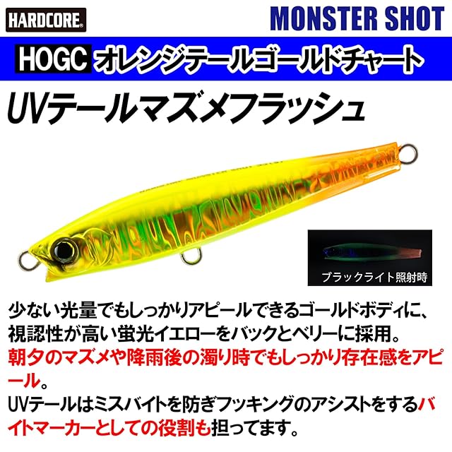 商品名:DUEL(デュエル) ルアー シンキングペンシル ハードコア モンスターショット(S) 遠投 【 釣具 釣り具 海釣り 淡水 シーバス 】 80mm 重量:30g F1207-HOGC オレンジテールゴールドチャート