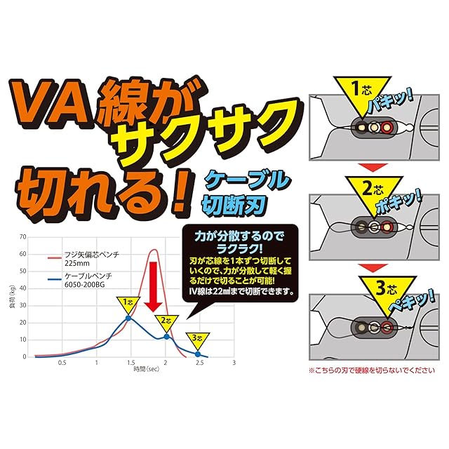 切断能力:VA・VVF線Φ2.6mm×3芯、IV線22mm2