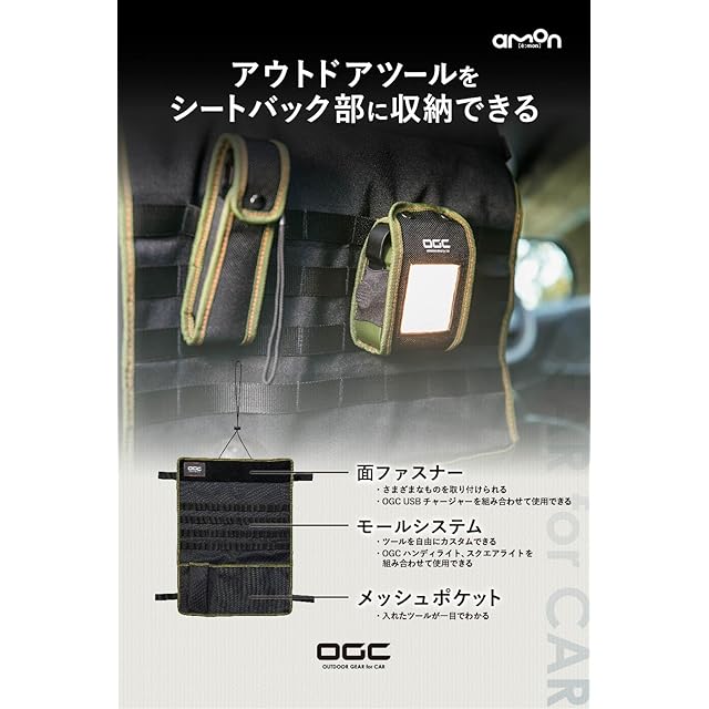 背面部には「ダブルラッセルメッシュ」採用で蒸れにくく快適。シートバック部には小物の収納に便利な収納ポケット・モールシステム・面ファスナー付。