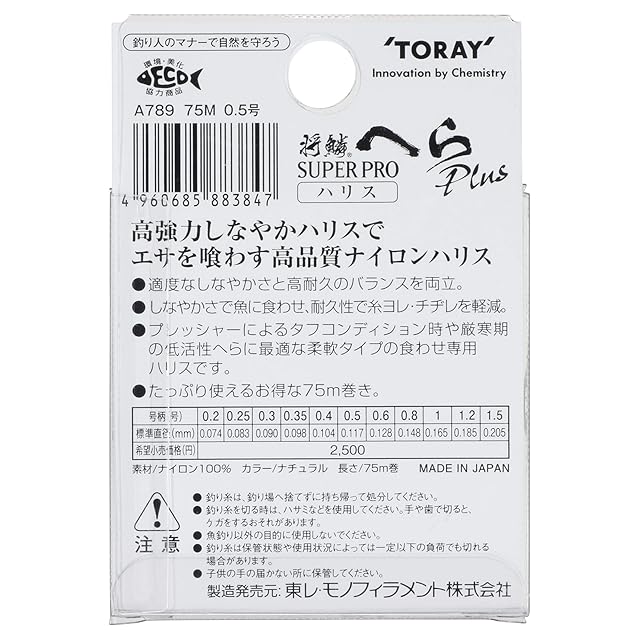 東レ(TORAY) ハリス 将鱗 へら スーパープロプラス ハリス ナイロン 75m 0.6号 ナチュラル