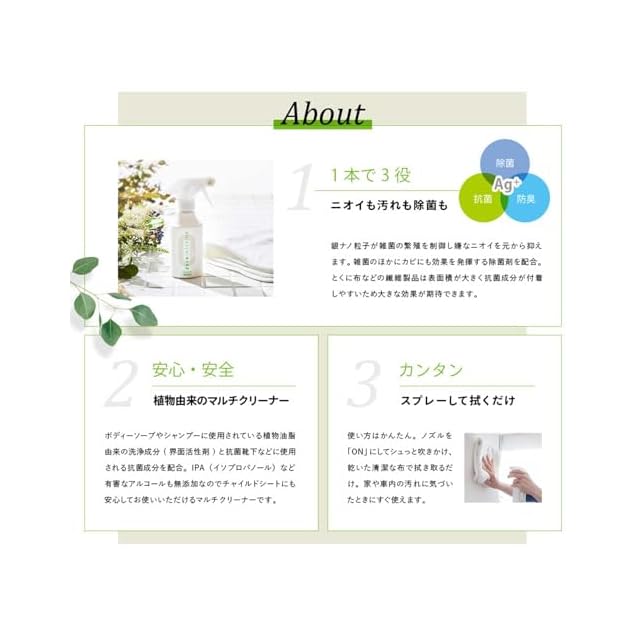 除菌・抗菌・防臭ができる銀ナノ粒子配合のクリーナー。