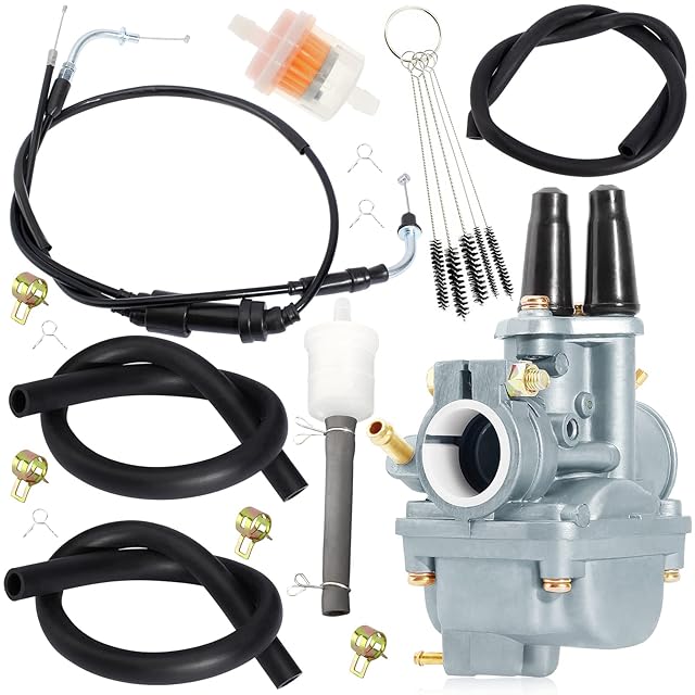 パッケージ内容: キャブレター x 1。 1×キャブレタークリーニングブラシ。 1×スロットルケーブル。 1×フィルター。 1×ガスフィルター。 1×ホース。 1×燃料フィルター。 2×燃料ライン。 8×クランプ。