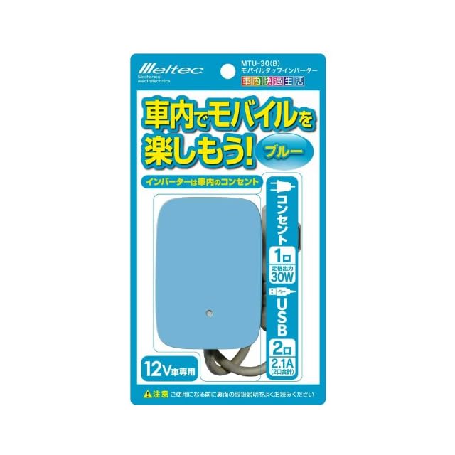 商品名:メルテック(meltec) モバイルタップインバーター(ブルー) 2way(USB&コンセント) DC12V コンセント1口30W USB2口2.1A Meltec MTU-30B
