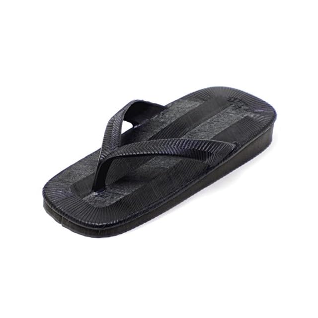 ■雪駄の履き方■<BR> 鼻緒を指の又まで深く入れずつま先でひっかける様にして、かかとを少し出して履くのが「粋」な履き方とされています。<BR><BR> ■サイズ:男性用フリー<BR> ■適応サイズ:25.5~27.0cm<BR> ■カラー:ブラック(黒)<BR> ■アッパー素材:PVC<BR> ■底素材:EVA<BR> ■生産国:日本(MADE IN JAPAN)<BR> ■重さ:片足約230g<BR> ■長さ:約25.5cm <BR>■幅:約10.3cm<BR> ■かかとの高さ:約3cm<BR><BR> ★表記について★<BR> 数値は手作業による採寸ですので若干の誤差が生じる場合がございます。<BR><BR> ★STYLE・USE★<BR> 和装/和服/着物/浴衣/甚平/旅館/居酒屋/祭り/花火大会/イベント/コスプレ/衣装/レトロ/カジュアル/ジーンズ/普段履き/庭履き/お散歩/ビーチサンダル/父の日/紳士/メンズサンダル/ゴムサンダル/ゴム雪駄/ゴム草履<BR><BR> ★APPEAL POINT★<BR> V.I.C(ニシベケミカル)とのコラボ商品/一体成型のインジェクションアッパーで水濡れOK/軽量/軽くてクッション性のあるEVAソール/左右対称デザイン/波型パターンのアウトソール