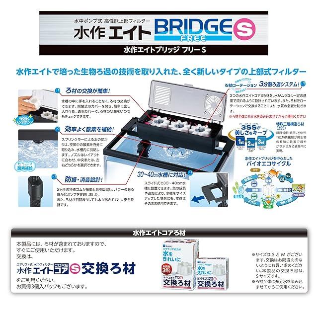 水作エイトのろ材を使用し、優れたろ過能力はそのままにメンテナンス性を向上させた上部式フィルターです。
