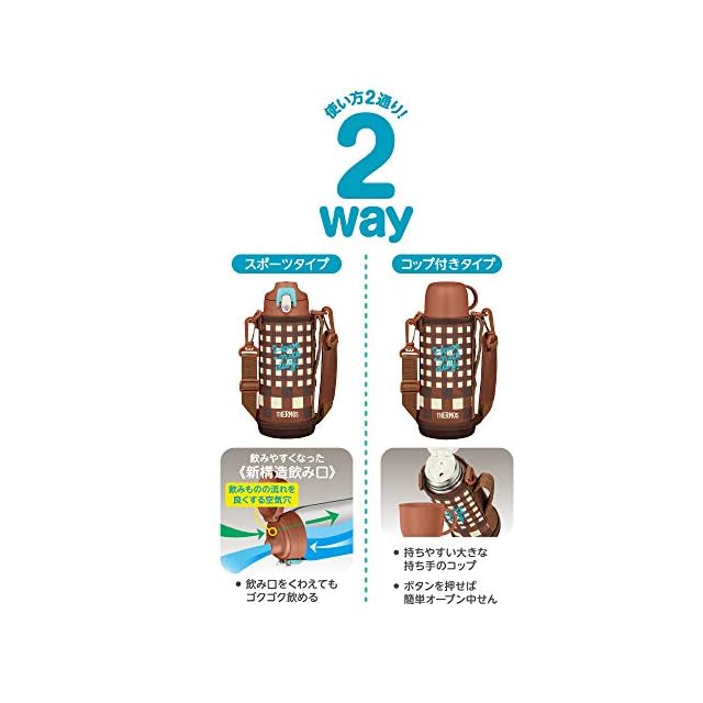 サーモス 水筒 真空断熱2ウェイボトル 0.8L/0.83L ブラウンチェック FJJ-800WF BWC