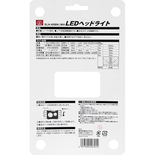 SK11 作業用 LEDヘッドライト 軽量コンパクト設計 SLH-65BK/WH