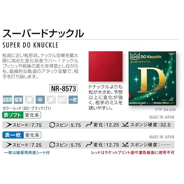 ニッタク(Nittaku) 卓球 ラバー スーパードナックル 表ソフト 変化系 NR-8573 レッド 中