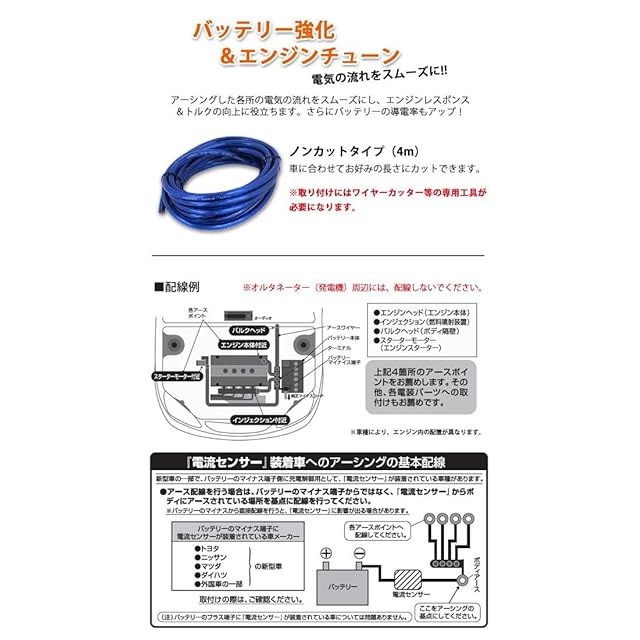 商品名:BX-11G アースキット アーシングチューン ノンカット 4m巻き 12V車専用 -