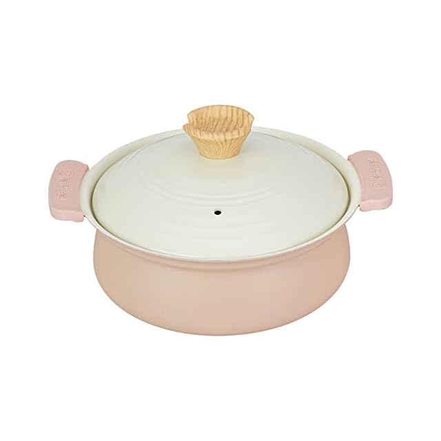 和平フレイズ 軽くて割れない 土鍋風 アルミ卓上鍋 18cm ピンク 内側セラミックコーティングで色がつきにくい 直火・IH RB-2494