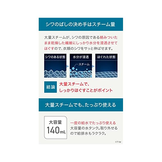 商品名:ティファール パワフル連続スチーム 平均約15g/分 衣類スチーマー 専用モデル 「アクセススチーム ライト」 立ち上がり約45秒 スチームアイロン DT7002J0