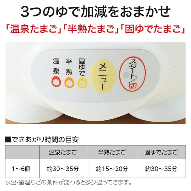 「温泉たまご」「半熟たまご」「固ゆでたまご」が調理できます。