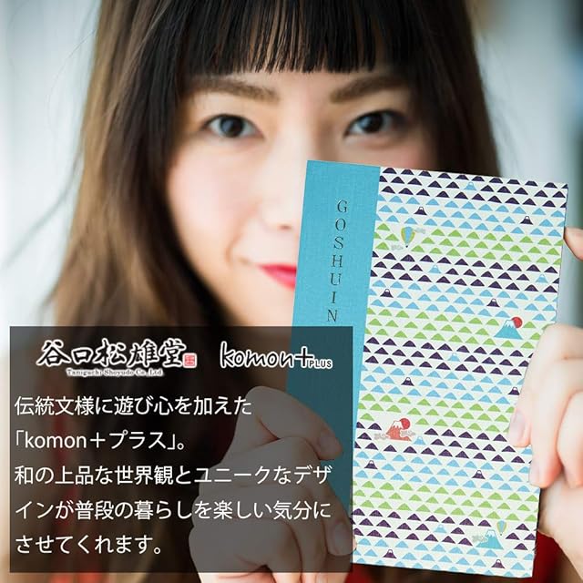 【うろこ富士 komon+】伝統文様に遊び心を加えたデザインの御朱印帳です。日本の伝統文様にはそれぞれ思いが込められています。つまり心を伝える紋様です。例えば、矢絣の矢羽はまっすぐに突き進むことから縁起柄 とされ、青海波は繰り返される波のように平穏な暮らしが続くように願いが込められた吉祥柄。粋で、ユーモアがあって、美しいデザインには 畏敬の念を覚えずにはいられません。