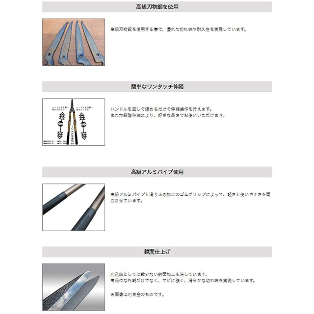 材質:刃=刃物鋼、パイプ=アルミ合金