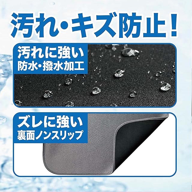 マットは表面を撥水加工したウエットスーツ素材です。水や汚れに強い防水素材で、アウトドアにも適合です。
