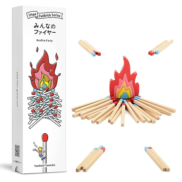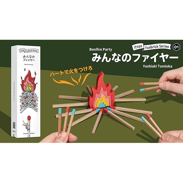 「せーの、ファイヤー!」でマッチを出しあって、炎を育てる協力ゲームです。 お互いを気にかけ、心を一つにして炎を大きくしていきます。 見た目も楽しく簡単ルールで盛り上がるので、 パーティーやゲーム会のアイスブレークにもオススメ、 すぐに場を暖めてくれること請け合いです! 『ファンブリックシリーズ』は、ittenのゲームシリーズです。 スリムでポータブルな箱をスライドすれば、 いつでもどこでも気軽にゲームを始められます。 国内外のゲームデザイナーによる、個性的なゲームをラインナップしています。 アナログゲームならではの魅力と楽しさを持ち運んでください。