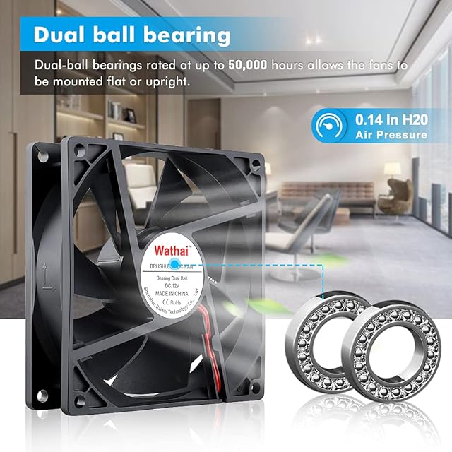 Wathai 9225 92mm x 25mm 12V DC ブラシレス コンピュータケースファン 12ボルト 2ピン デュアルボール DIY冷却換気排気プロジェクト用