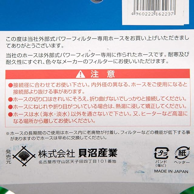 商品名:貝沼 外部式パワーフィルター専用ホース 直径16/22 3m