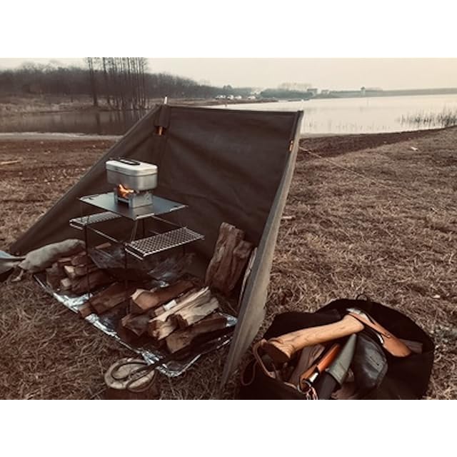 風を遮り焚火を守る帆布製ウインドスクリーン 焚火陣