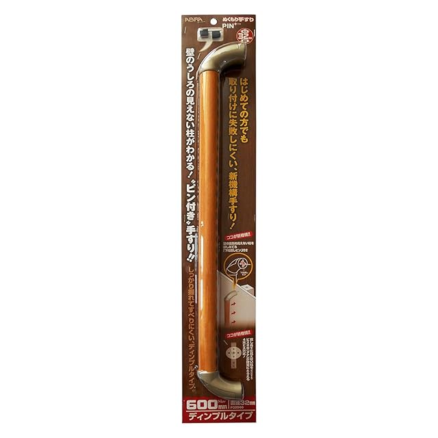 商品名:WAKI ABIRA ぬくもり手すりPIN+ プラス ディンプルタイプ 600mm 直径32mm ハニークリア