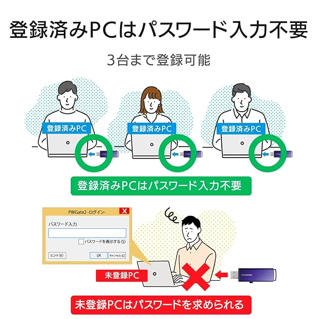 パスワードを入力するまではデータ保存領域へアクセスできないため、プライベートな写真や動画はもちろん、ビジネス用のプレゼン資料やワード、エクセルなどのデータも安心して持ち運べる。
