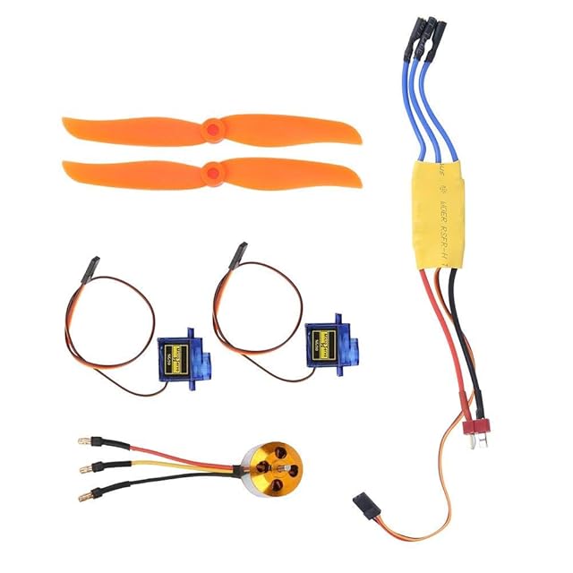 RC平面パーツ 2200KVブラシレスモーター 6035プロペラ モーター4.8V-6V サイズ27.5x38mm シャフト径3.17mm(30A ESC+9Gサーボフリーマウントプレーン DIYパーツ付き)(2200KVモーター+6035プロペラ+9Gサーボ+30A ESC)