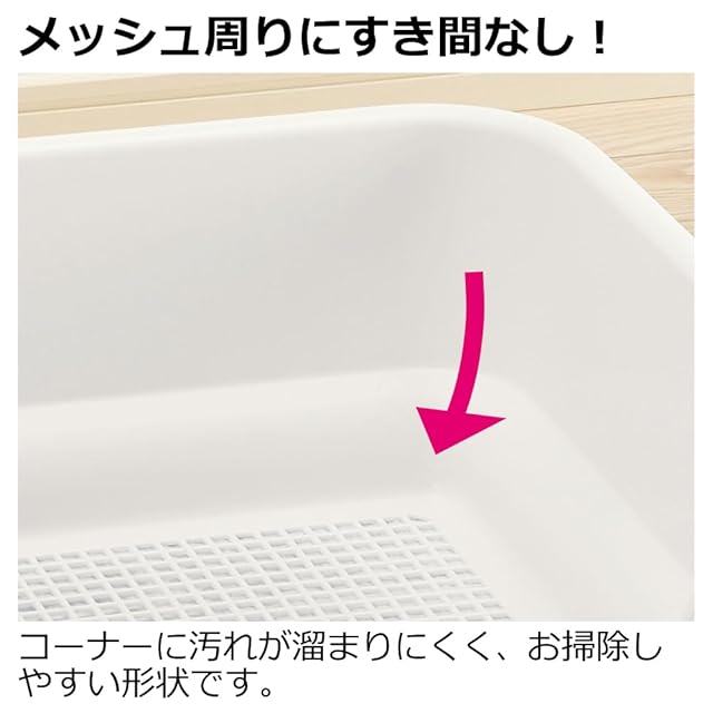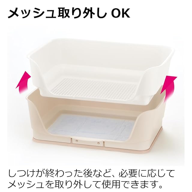 子犬がトイレをおぼえやすい3面壁付きなので、トイレのしつけがしやすく、おしっこの飛び散りや漏れを抑える。
