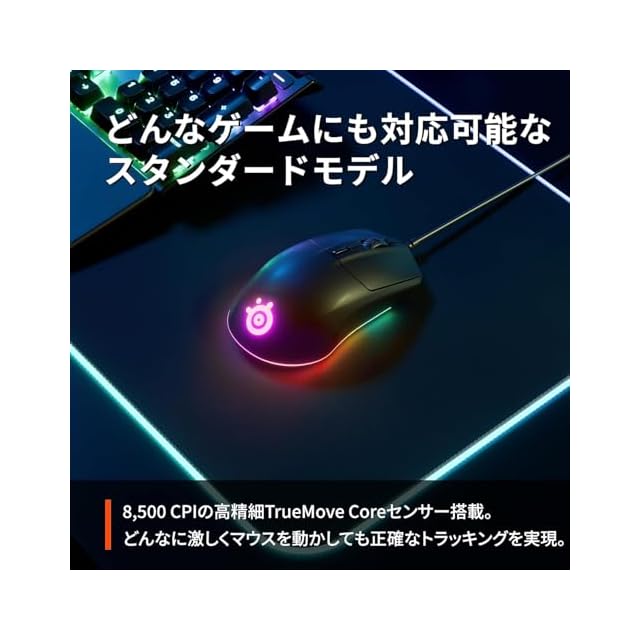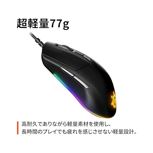 商品名:SteelSeries USB ゲーミングマウス 有線 軽量 低遅延 メカニカルスイッチ 3ゾーンRGBイルミネーション Rival 3 62513
