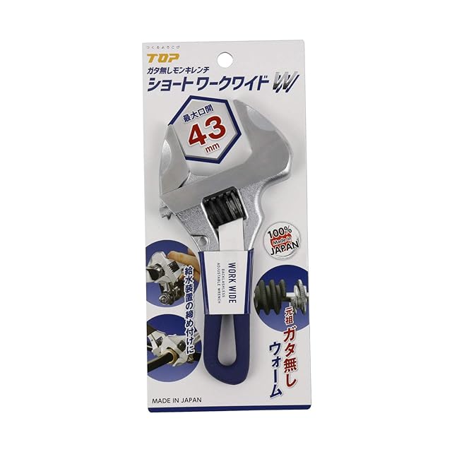 トップ工業 (TOP) ガタ無しモンキーレンチ ショートワークワイド 口開き0~43mm ネイビー ガタ無しウォーム搭載 HM-43MSNB 燕三条 日本製