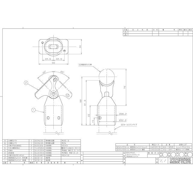 商品名:マツ六 手すり部材 BAUHAUS 32ステンアクアレール 支柱用自在ジョイント AQ-18MI 鏡面仕上げ