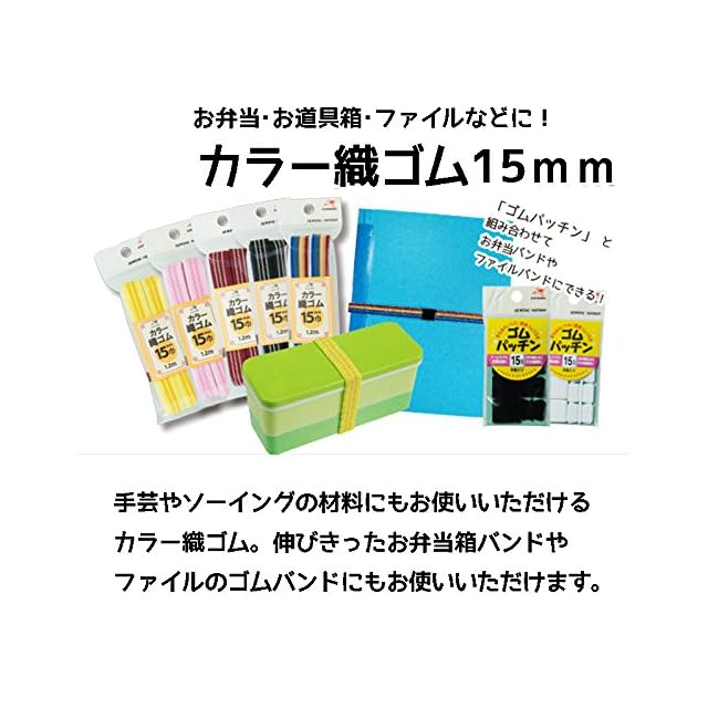 商品名:金天馬 カラー織ゴム 15mm 1.2m ディープレインボー kw93260
